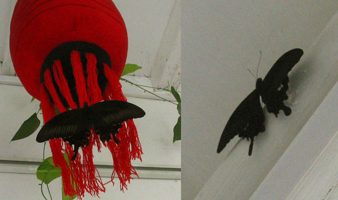 今天在店里,有两只很大的黑蝴蝶——我想是凤碟,飞进屋子,并且停留了很久。弄得我和韩阿姨心情都巨好。 关于蝴蝶,最早的记忆应该是南京的栖霞山。听说那里有一个蝴蝶谷,一到春季,漫山遍野的黑色凤碟。我从没有看过,不知道是谁讲了一句,至此不忘。 后来在很多地方看到这样的场景,就自己满足了,认为去过栖霞那个地方了。 实际上一直不是太喜欢蝴蝶这样的东西。很灵性,很奇异,很短促一生,很迥然不同的变化。也许是因为雏形的丑陋,也许是因为瞬间的美丽,或者一直不能肯定如果我手抓了它的翅膀,那沾上的满手粉末是否有毒,会使得我两手溃烂?——这种种让我对这样东西远而敬之,并心怀畏惧。虽然并不阻碍我每次由衷的赞叹。 有一个时期,我一下子知道蛾子不是蝴蝶,蝴蝶不是蛾子,心情好了一些,但更怕了一些。后来一直每次看到脑中第一反应必是:是蝴蝶,不是蛾子;或者,是蛾子,不是蝴蝶。然后再去看它好看不好看,带着一付小心翼翼、随时象个小虫子遁走的姿势。 想起《梁祝》里的蝴蝶。中国古小说或者图典里的蝴蝶总是色彩斑斓的样子。还有众多的蝴蝶展上也是各种漂亮颜色巨多的标本陈列,但生活中看到的很少,大部分是一些普通的小蝴蝶,或者就是这样大个的黑色凤碟(也许不是凤碟吧?好像凤碟更大许多)。从背上看过去,就是纯黑的,从身体内看,有白色的眼睛花纹,飞起来,大翅膀缓慢的扑打,白色花纹闪耀着,象流线一样滑动。 蝴蝶飞起来似乎翅膀的速度并不快,但你抓不到,它一飞一飞地就远了。象跳跃的逗号,引着你,渐入迷径。 看到蝴蝶在店里飞,心里不知道怎么高兴起来,嚷着拍啊拍啊,一边庆幸自己不小心带了相机。好像隐约的记忆里说,这样的美丽蝴蝶飞进屋子,会有很好的喜事。我想这是不可靠的记忆,或是杜撰,但心里偏偏去固执地信,想自己的生活里多一丝阳光。 这是一种遥远的、谨慎的快乐。很快就会流走,但让我这一天即时偶然忘了这件事都一直快乐着。在微笑下面,我隐不住忧伤,但我一直用手指柔滑地抚摩自己的脸颊。 关了电脑又爬上来写字。怕明天忘了就没法写了。这些天太忙,常常有了句子没法写下来,就忘了。如果记下来也都是文字。不过没关系,即使我忘了那一刻描绘他们的字眼,但这种感觉随时会回来,我以后再记就是了。