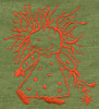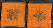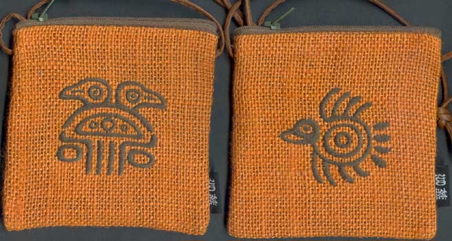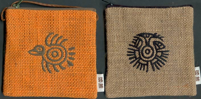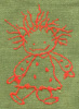 橙色镂空麻布上灰绿色线绣 尺寸:14×14cm |