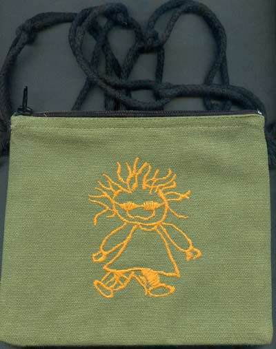 蓝色帆布上白线绣 尺寸:15×20cm |
