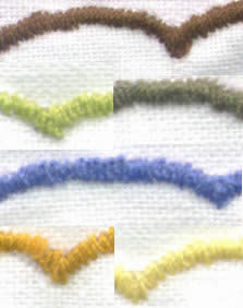 因为外婆和妈妈总也买不到好看合适的手帕,就算有也是8元一条奇丑无比的。所以妈妈就干脆买了白色细织棉布,外婆画了花边,我来绣上各种颜色,发现什么颜色都好看,这儿放了几个颜色,最外面双直线的是男式的,你瞧——