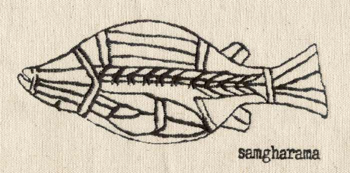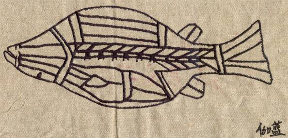 非洲鱼2号,我觉得比非洲鱼1号花俏了一些,不过仍然是很不错的图案。用的更粗手的麻布上黑线绣