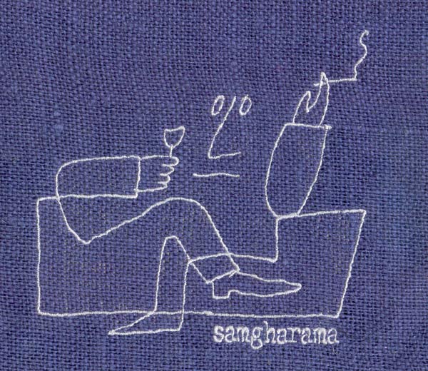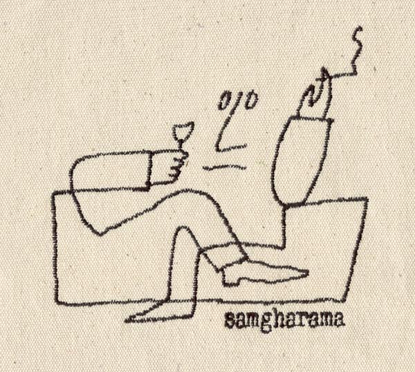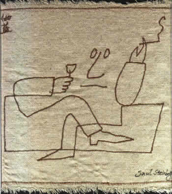 ,Saul Steinberg的画。右图是“沙发中的吸烟男人”局部的布纹织地。