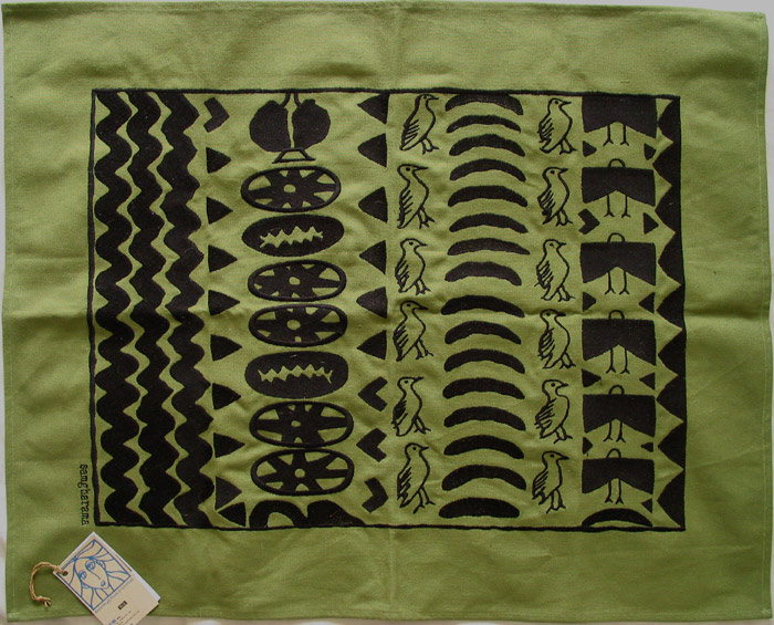 这个图案上面的鸟让我想起了三毛笔下的非洲石刻艺人。在广袤的黄色沙漠上,生与死,灵与肉,虚与实,精神与物质,天堂与地狱,所有一切平铺在大地上,一览无遗,你可以细细审视,看自己的前生、今生,还有来生。