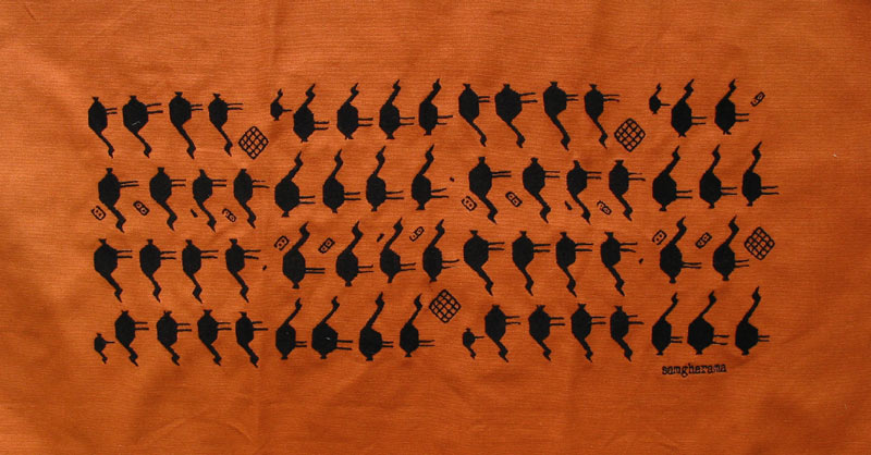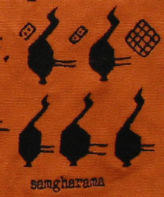 橙色帆布黑色线绣。尺寸:48*83cm
