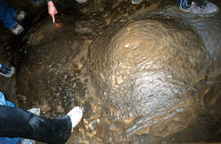 在地下大厅只呆了不到半个小时,部份队员的头灯开始转暗,准备不足我们并没有备用电池。最要命的是三盏射灯也先后开始罢工。此时的时间是下午三点,如果今天要返回火卖村的话,就必须尽快返回,因为要走出地下大厅和天坑,还有几段险路,万一返回时灯光不足将会十分危险,而实际上后来也确实出现了这种情况。尽管大家依依不舍,我们还是开始返回了。  |