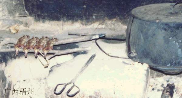 图片说明:广西梧州一农户的灶台上烤的老鼠,我也不知道他们烤了后是怎么吃法。